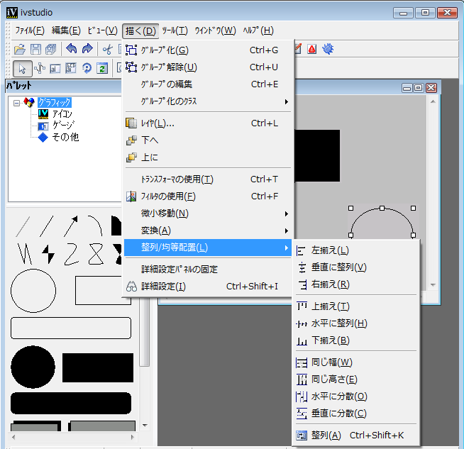 図 2.7 「描く」メニューの「整列/均等配置」サブメニュー