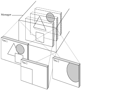 A manager uses one or multiple views to display its set of graphic objects. These views are instances of the class