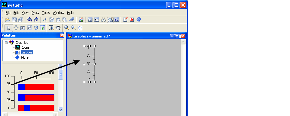 In the upper pane of Palettes panel, click Gauges in the tree.
