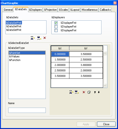The Data Sets page lets you define and handle the data sets that will be represented by the current chart.