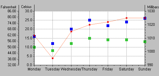 Defining a Related Ordinate Scale shows the chart you will obtain when you add the Fahrenheit scale:
