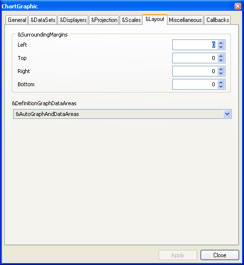 The Layout page lets you define the global layout of the chart (that is, the position of the different areas of the chart within its bounding box). There are three areas within the bounding box of the chart.