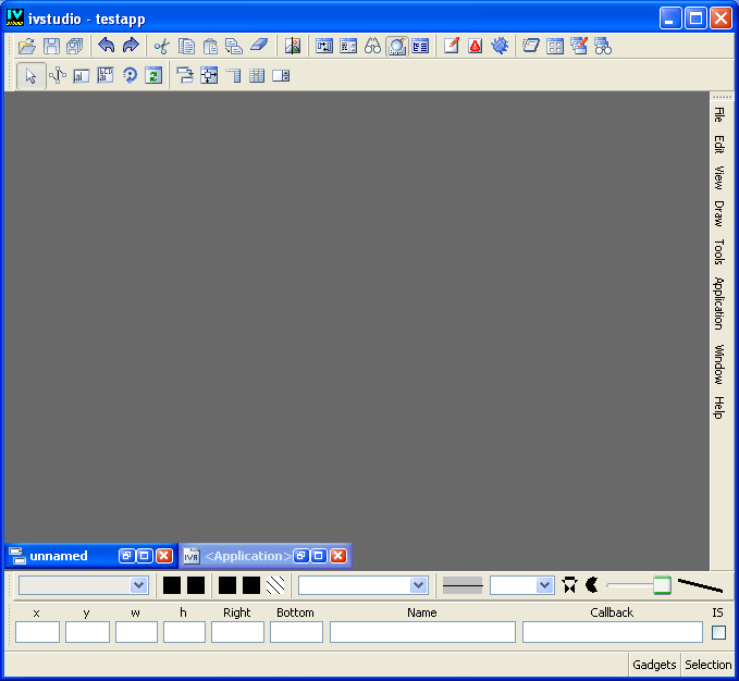 In the following illustration, the main menu bar is docked again to the right side of the GUI main window.