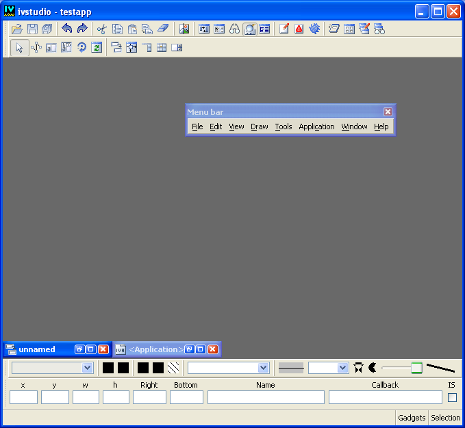 In the following illustration, the main menu bar has been undocked and floats inside a top window.