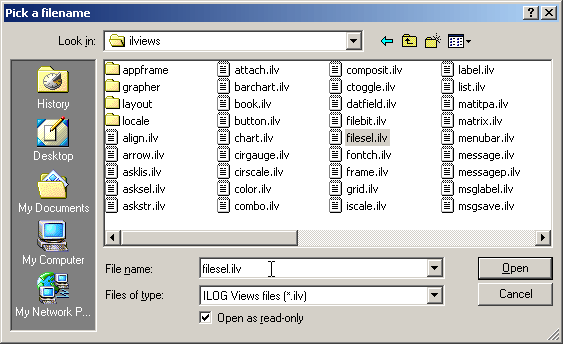 IlvFileSelector (IlvSystemView parent, const char *message, const char *directory=0, const char *pattern=0) | |