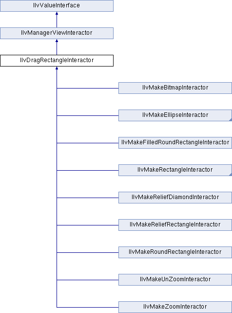 Use this class to drag rectangles in a view connected to a manager. The IlvDragRectangleInteractor class is never directly instantiated within a manager. Use it as a base class for the creation of derived interactors that drag rectangles in a view. To do this, redefine the member functions drawGhost and doIt.