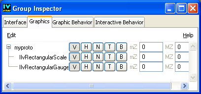 Select the graphic node IlvRectangularScale. You may want to enlarge the window to better view the names of the objects, or move the pointer over a name to see the tooltip giving the full name of the object underneath the pointer.