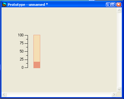 Drag a vertical rectangular scale (IlvRectangularScale) from the palette to the “Prototype - unnamed” window. Then drag a vertical rectangular gauge (IlvRectangularGauge) and place it next to the scale. Stretch the gauge vertically so that it matches the height of the scale: