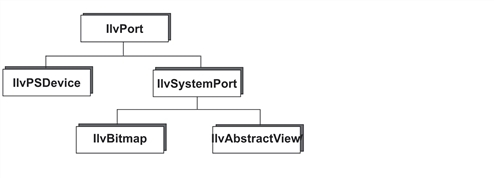 The illustration below shows some of the predefined classes that derive from IlvPort: