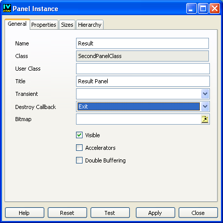 4. In the General page of the Panel Instance inspector, type Result in the Name field.