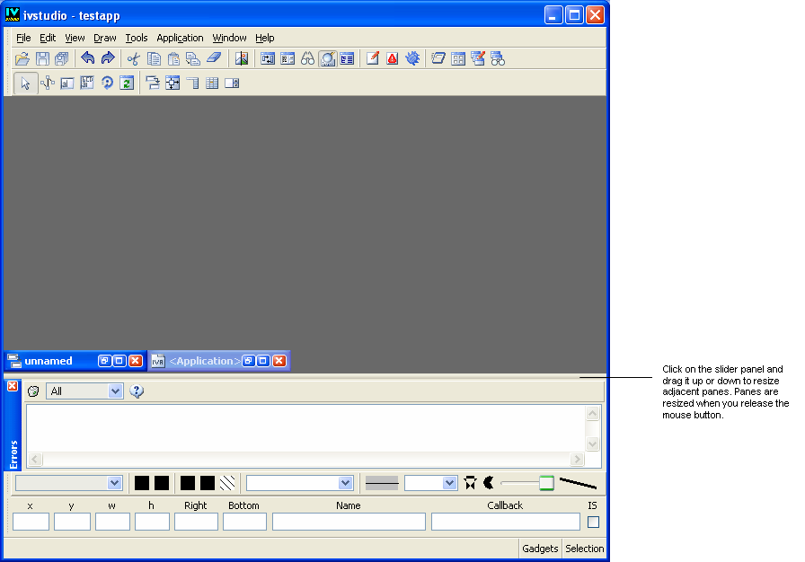 A slider pane is an instance of the class IlvSliderPane, a subclass of IlvGraphicPane, which you can drag to resize adjacent panes.