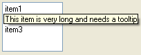 String lists can display tooltips when the mouse pointer is over partially visible items, provided that tooltips have been enabled with the member function useToolTips.