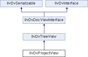 IlvDvProjectView is a subclass of IlvDvTreeView. It edits project documents whose class must be derived from IlvDvProjectDocument. When initializing, it creates tree gadget items. These items are built according to project items owned by the associated project document, in the same order.