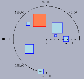 The following images show data sets represented with a bubble displayer in a Cartesian chart (on the left) and a polar chart (on the right).