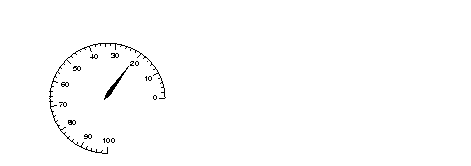 A circular gauge holds a numeric value and displays it by means of a needle that defines a partial ellipse, as in the figure below (not including scale).