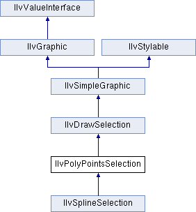 The IlvPolyPointsSelection class is used to represent the selectable portions of an IlvPolyPoints object. It draws markers at each point of its attached IlvPolyPoints and provides means to edit those points independently from each other. This class is used by the selection and IlvEditPointsInteractor interactors.