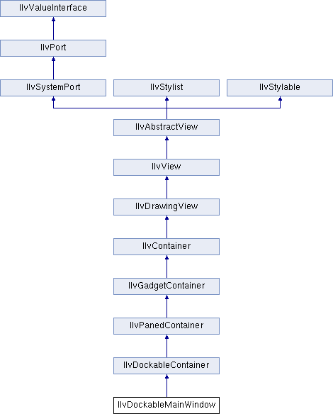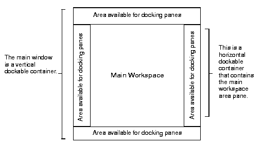 The IlvDockableMainWindow class is a subclass of IlvDockableContainer for managing the main window of a standard application that use docking panes. An IlvDockableMainWindow object is a vertical dockable container that defines a default layout that makes it possible to add docking panes by specifying a position relative to other docking panes. Using this class, you don't have to know the complete hierarchy of the dockable containers, which can be complex to understand and manage. Instead, you can think of your application main window as a simple list of docking panes.