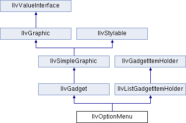 The IlvOptionMenu class defines a drop-down list of items from which the user can choose.