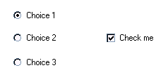 - IlvToggle objects grouped in an IlvSelector, IlvToggle used as a check box