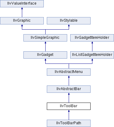 The class IlvToolBar defines a typical toolbar. This class handles tooltips, toggle buttons, pop-up menus, and any other gadgets.