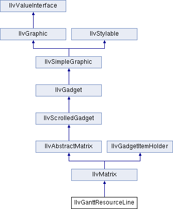 IlvGanttResourceLine is a subclass of IlvMatrix. It is implemented to work with an IlvGanttChartForm in order to show a resource.