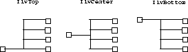 Rearranges nodes in a horizontal tree structure, starting from node. The parameters xspacing and yspacing specify, respectively, the horizontal and vertical space between node images. Specify IlFalse for the redraw parameter to prevent the grapher from updating the visible result immediately. The valid values for orientation are: IlvTop, IlvCenter (compatible with Rogue Wave Views 2.1), and IlvBottom, which provide the following outputs: