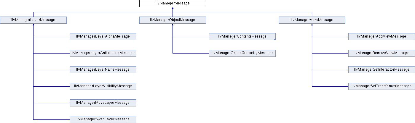 This class provides information and data used in the notification mechanism in the IlvManager class. When a notification needs to be made, the manager creates an instance of an IlvManagerMessage subclass and calls IlvManagerObservable::notify(), which propagates the notification to the list of observers attached to the manager. The propagation is done by calling IlvManagerObserver::update() with the manager message as argument. The message contains the notification category and type. The category is also called message mask and the notification type is also called reason. The manager message also contains an anonymous data field that points to additional information. This field has a different use and logic depending on the type of notification.