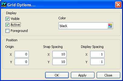 The Grid Options panel lets you specify the settings for the grid that can be displayed to help you draw and align objects in the current buffer window.