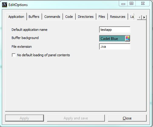 • Application Page  Set preferences for generating applications, including the default application name, the application buffer window background color, and the default file extension.