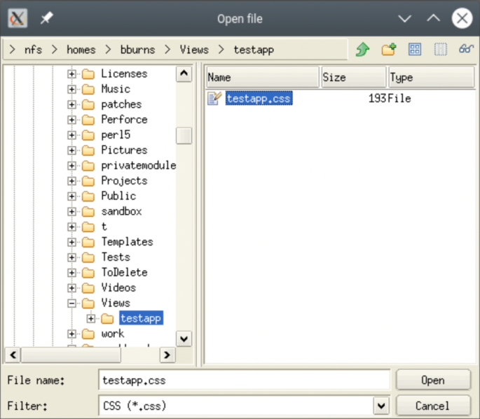 Click View > Options > Application CSS Look > Choose... The Open file dialog box appears.