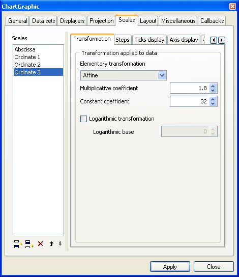 We want to represent the same data values on scale Ordinate 3 as we represented on scale Ordinate 1. However, on scale Ordinate 3, the values should be expressed in degrees Fahrenheit rather than degrees Celsius. To do this, we have to specify a transformation from degrees Celsius to degrees Fahrenheit for Ordinate Scale 3. Follow these steps: