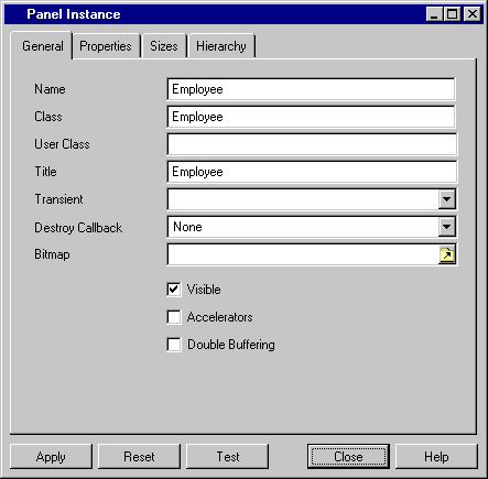 The Employee panel appears in the application buffer. This means that an instance of the employee panel has been successfully added to the application.