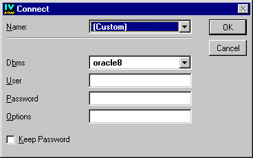 By filling out this panel and clicking OK, you establish a communication channel between the application and the DBMS; that is, you establish an SQL session.