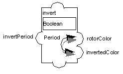 This example is presented in the pump prototype of the samples prototype library. When invert is set to true, the values of rotorColor and invertedColor are exchanged periodically. The period is defined by the invert attribute.