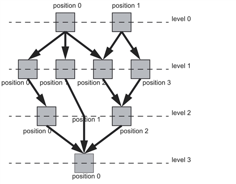 Level and Position Indices shows how the Hierarchical Layout algorithm uses the level and position indices to draw the graph.