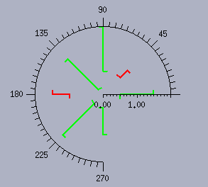 The item displayed for a given pair of screen points corresponding to a data point of the low-values data set and a data point to the high-values data set respectively is composed of a segment linking the pair of screen points with two pins perpendicular to the segment added at the extremities of the segment. Thus, the item is simply a polyline made of three segments defined by four points.