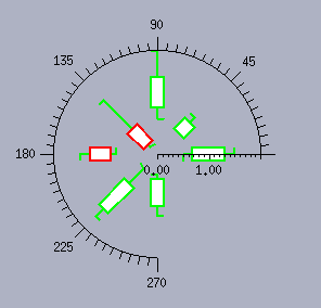 The following images show data sets represented with a high-low open-close displayer in a Cartesian chart (on the left) and a polar chart (on the right).