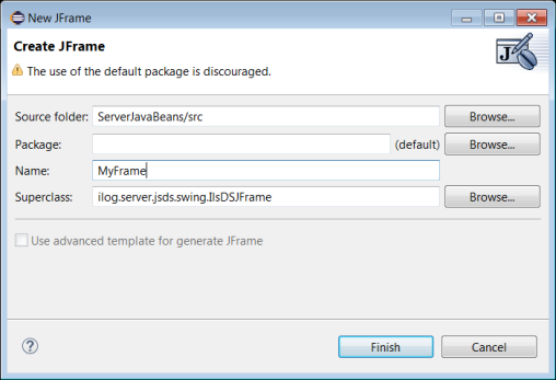 Add a new graphic class named MyFrame extending the class ilog.server.jsds.swing.IlsDSJFrame.