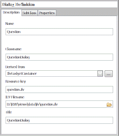 Classname: This name is by default the Name and the word Dialog, for example QuestionDialog. This name will be used during the code generation.