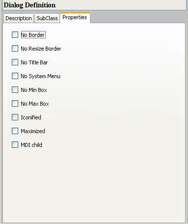 Subclass tab contains the name of the dialog’s subclass. This entry is optional.
