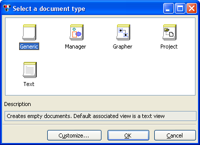 Several predefined types of documents are made available. Each type of document defines convenient methods for manipulating its data and is pre-associated with a specific view.