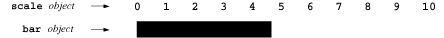There is thus a modification of the shape of a geometric form. In this example, it is a black rectangle that changes its width, but you could imagine many other kinds of meters, gauges, and dials that could have this same basic behavior. For example, you might have an elliptically-shaped object that becomes either thinner or fatter depending on the direction in which the cursor is dragged.