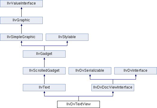 IlvDvTextView is a subclass of IlvText that implements the IlvDvDocViewInterface interface. It is used for displaying the text of the document in an IlvText gadget.