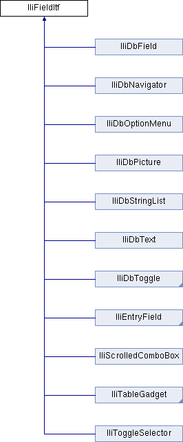 IliFieldItf class also supports subclassing from the IlvGraphic class. But since it is most often used in conjunction with the IlvGadget class, we usually refer to such subclasses as data-source-aware gadgets.