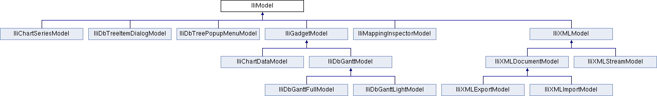 The class IliModel defines the interface for all models. A model class is used to associate a behavior to an event. The models are used by the gadgets to execute a specific task. A gadgets can use several models to work. For example, the tree gadget uses: a model to extract the data from data source and a model to build the popup menu when the user click on tree item with the mouse right button. For each basic behavior, there is a model class with its specific virtual functions and all these model classes inherit from the IliModel class.