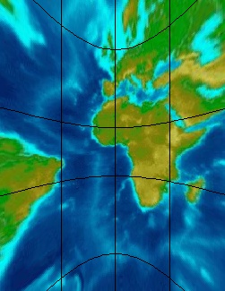 This projection applies only to spherical ellipsoids and implements an inverse function.
