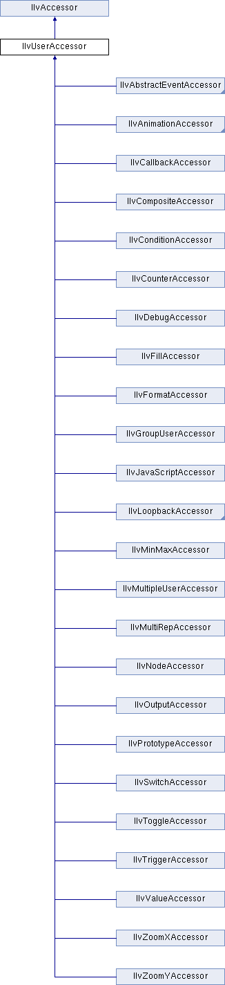 An IlvUserAccessor is an accessor that can be saved and restored. IlvUserAccessor is the base class for all accessors that are to be added dynamically by the user when building a prototype.