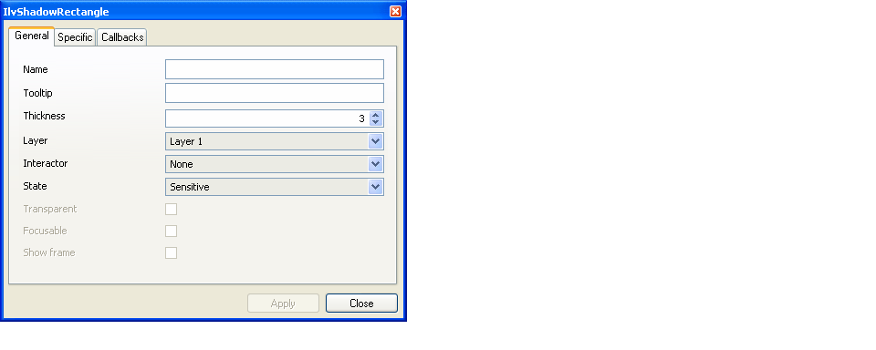 If you double-click an IlvShadowRectangle object, the following inspector panel appears: