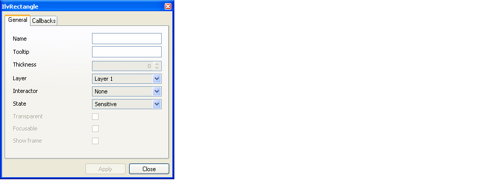 For example, you double-click an IlvRectangle object, the following inspector panel appears: