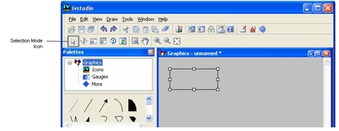 The Selection mode lets you select, move, and resize objects and do other common editing operations. This mode is activated by default when Views Studio is launched.